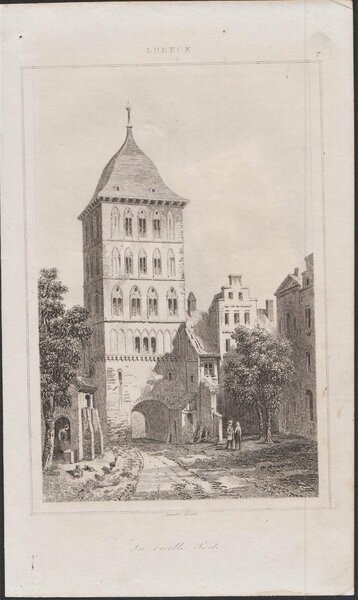 Stampa antica Old print Germania Lubecca Lubeck il porto della città Lemaitre 1841