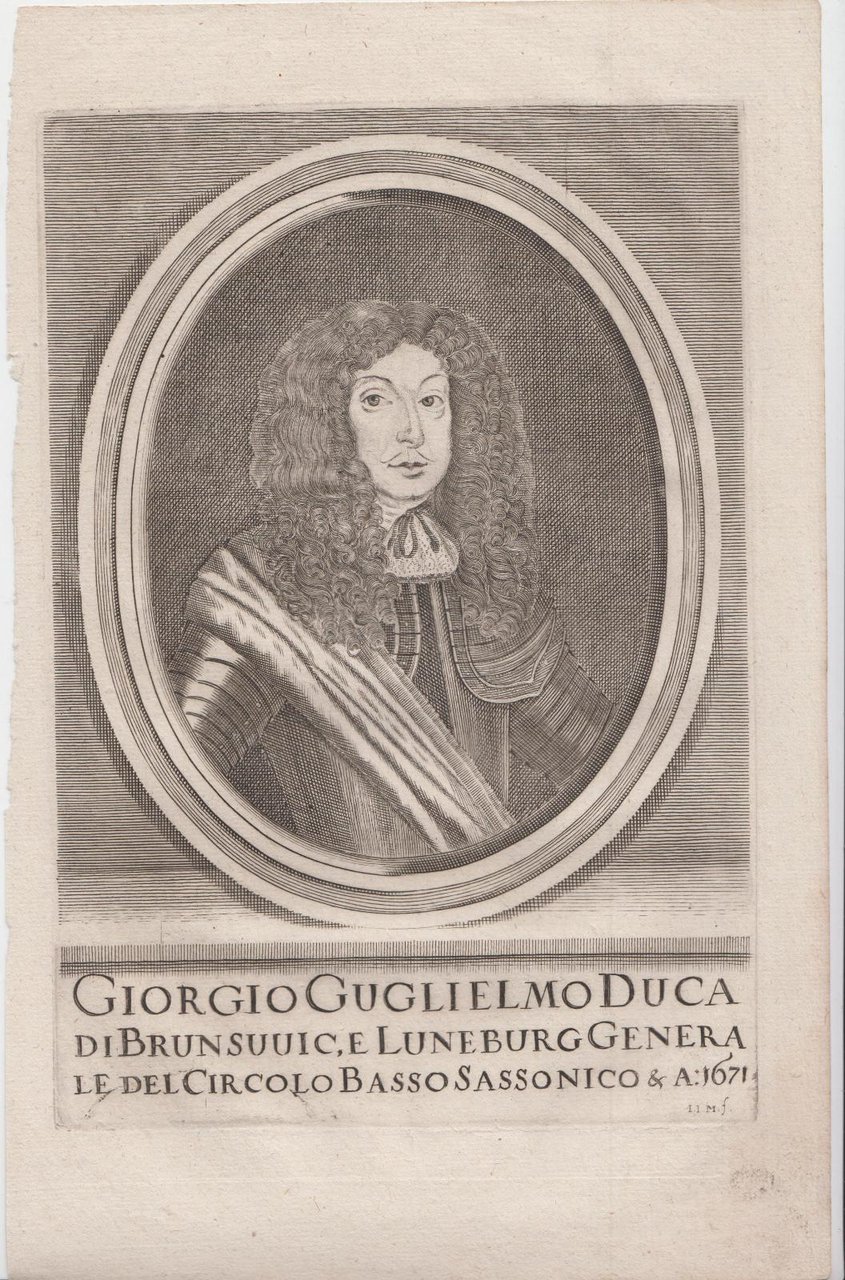 Stampa antica old print Giorgio Guglielmo Duca Di Brunswic E Luneburg Generale Del Circolo Basso Sassonico & A 1671