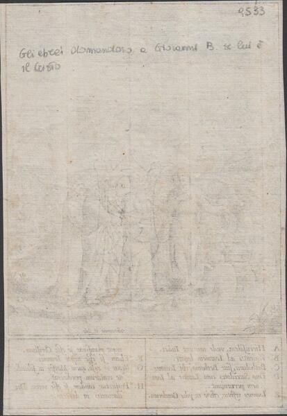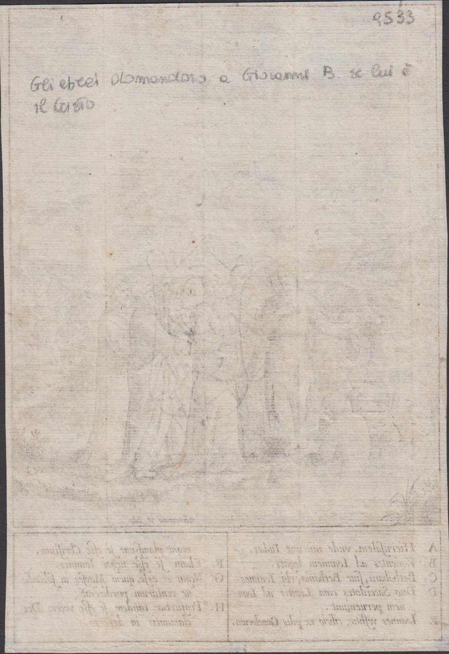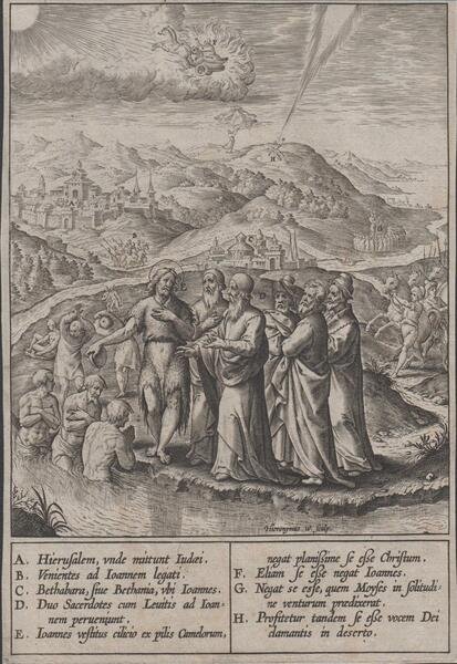 Stampa antica old print Gli Ebrei chiesero a Giovanni Battista sei tu il messia? H. Wierix 1596