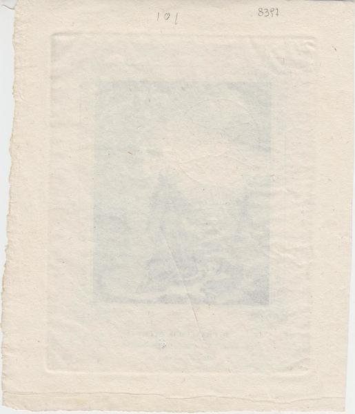 incisione sbiadita con carta senza vergelle con filigrana stella a sei punte entro cerchio sormontato da una croce, dimensione mm. 178 x 214