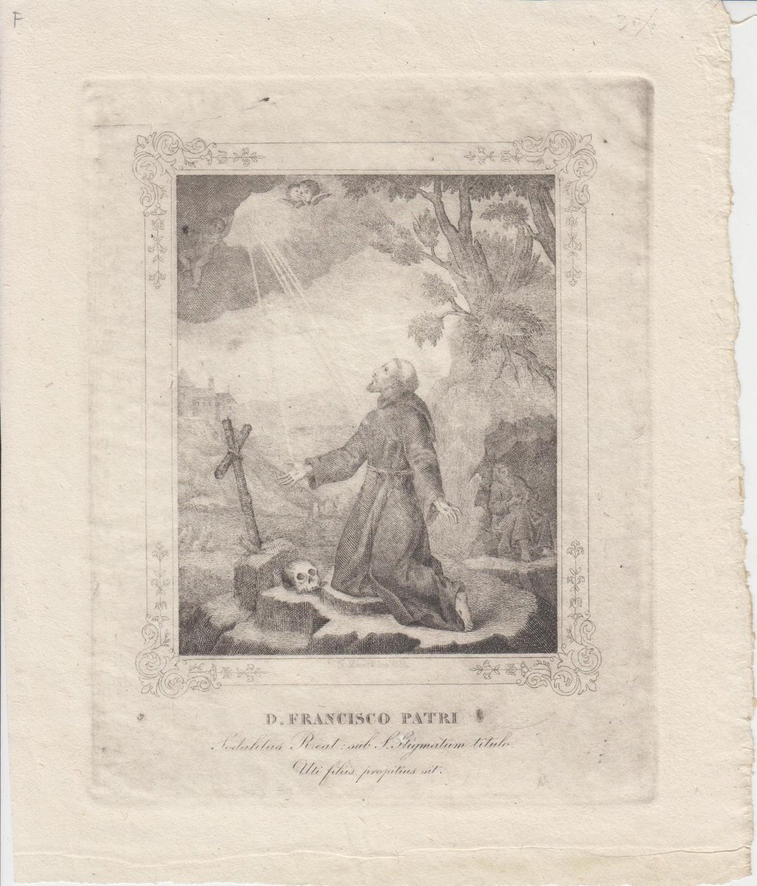Stampa antica old print Incisione D. Francisco Patri Nicola Moneta 1854