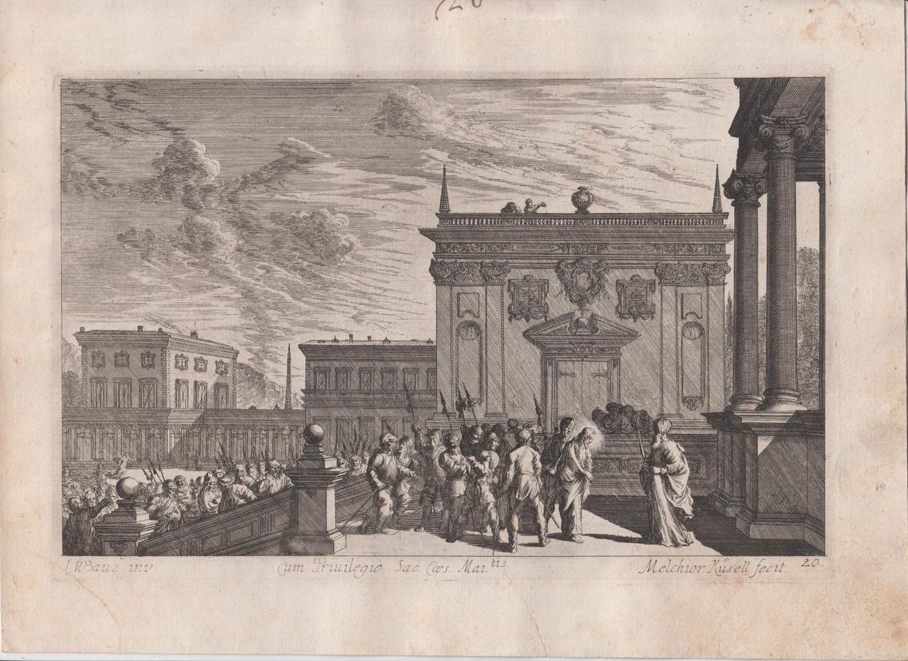 Da Iconographia; una serie di 148 lastre incise di Küsel su disegni di Baur. Il frontespizio recita in latino: "Complectens in se Passiones, Miracula, Vitam Christi universam" o "Abbracciare le passioni, il Miracolo, tutta la vita di Cristo". La serie ebbe un enorme successo e passò attraverso numerose edizioni tra gli anni 1670 e 1702.