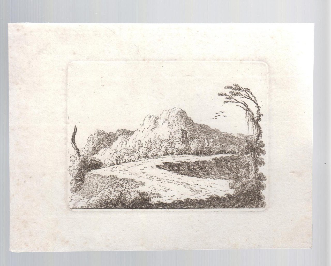 Stampa antica old print Incisione in rame Antoine Waterloo? Paesaggio 2 1650 c.a.