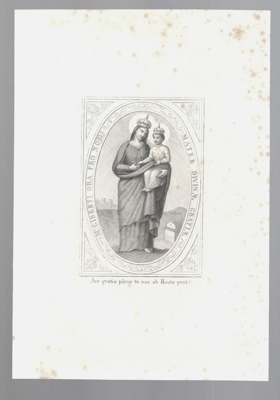Stampa antica old print Incisione Madre della Divina Grazia Monte Giberto 1800 c.a.