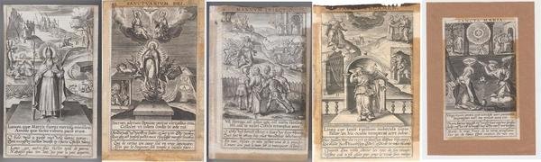 5 incisioni tratte da: Paradisus sponsi et sponsae in quo messis myrrhae et aromatum, ex instrumentis ac mysterijs Passionis Christi colligenda, ut ei commoriamur. Et Pancarpium Marianum 1618,