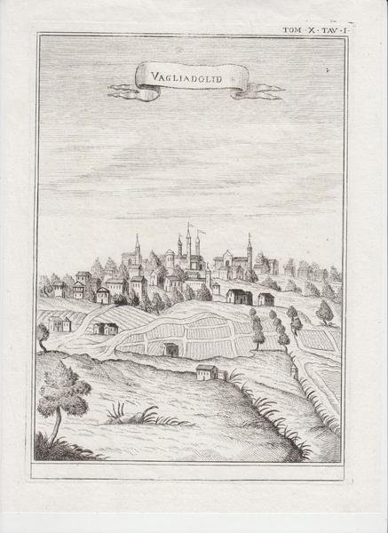 Stampa antica Old print incisione Veduta Spagna Vagliadolid 1750 c.a.