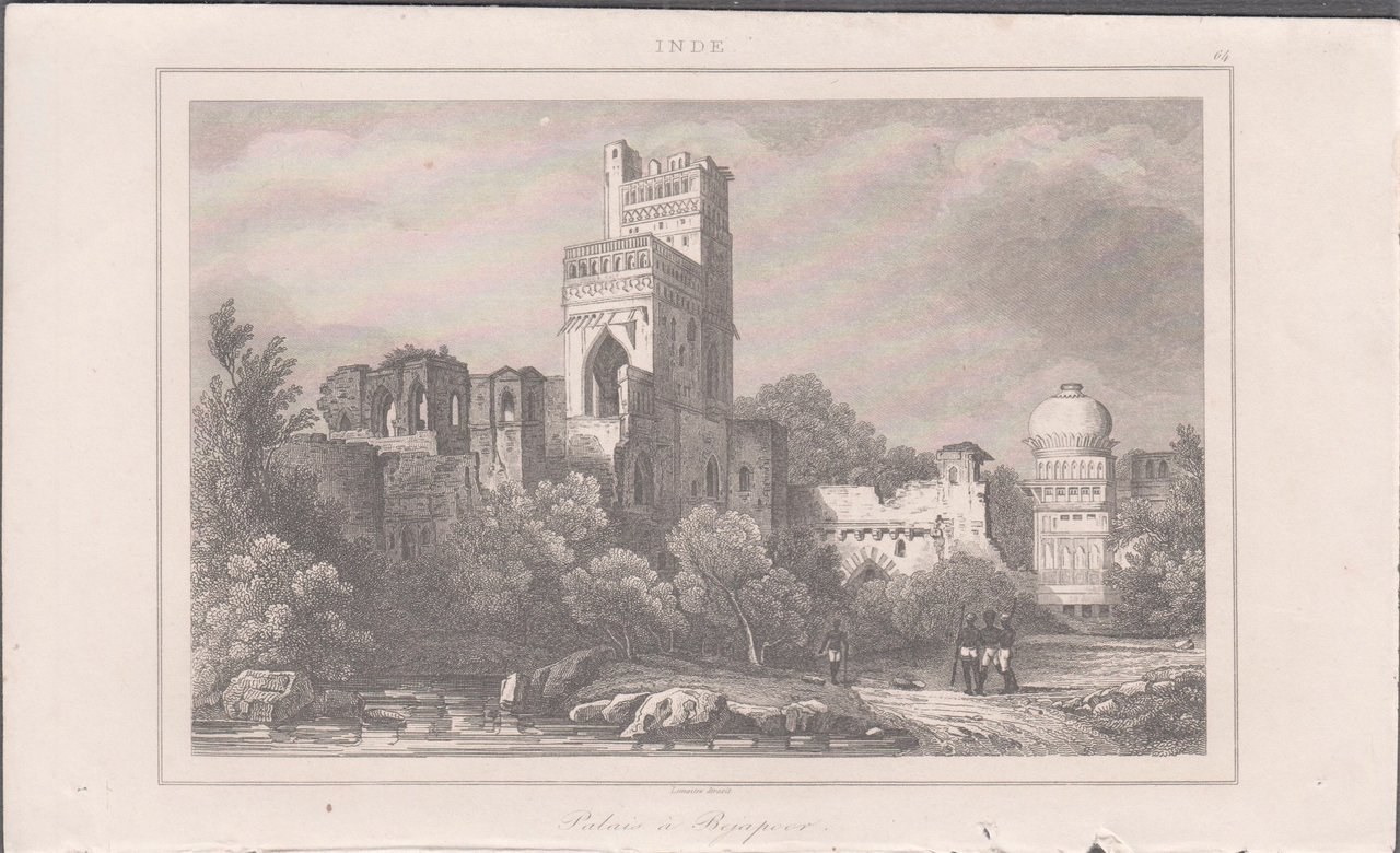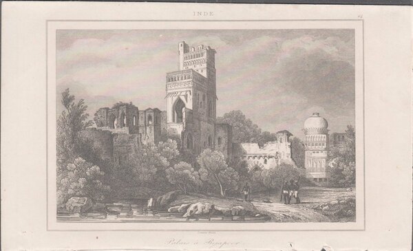 Stampa antica Old print India Palazzo a Bejapoor Bijapur Lemaitre 1841
