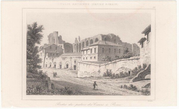 Stampa antica Old print Italia Antica Rovine del palazzo di Cesare a Roma Lemaitre 1841