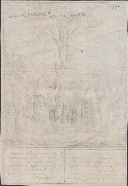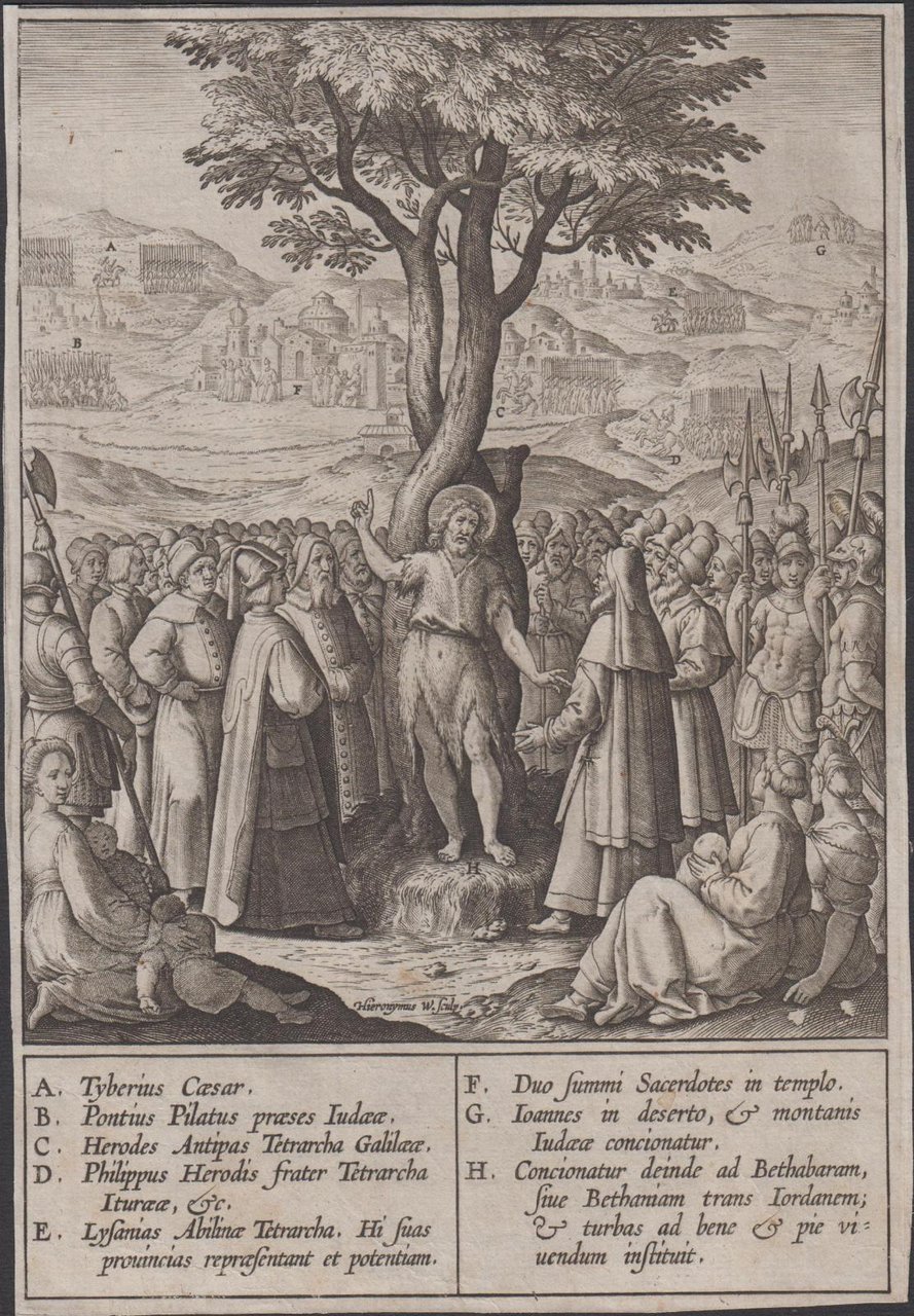 Stampa antica old print La predicazione di Giovanni Battista H. Wierix 1596