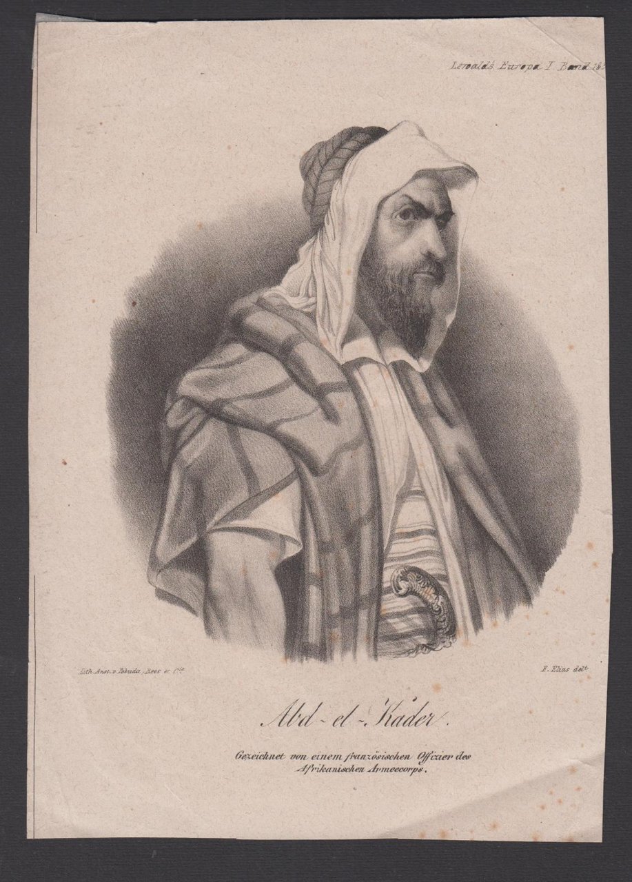 Stampa antica Old print Litografia Abd el Kader XIX sec.