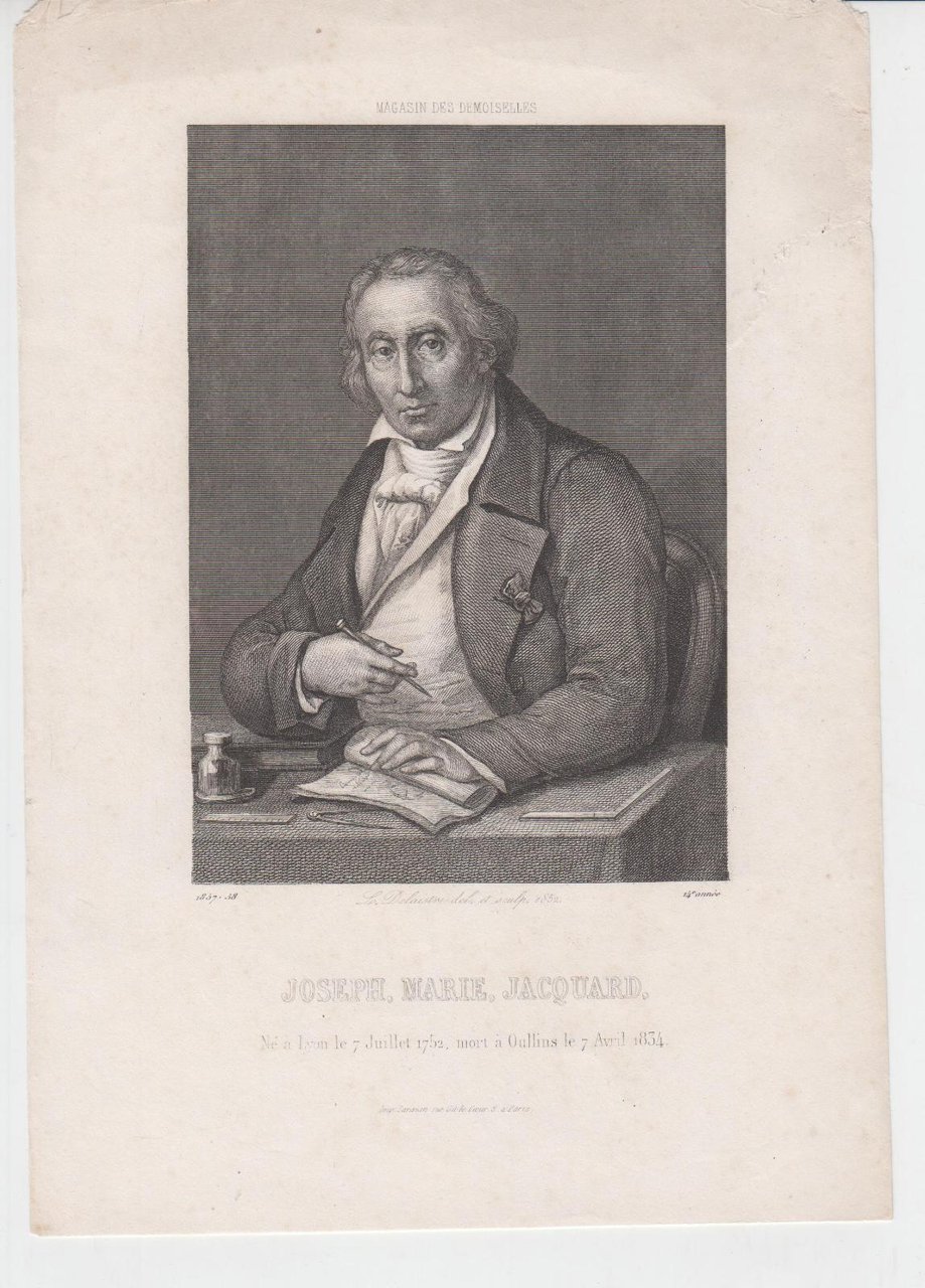 Stampa antica Old print Litografia Joseph Marie Jacquard 1850 c.a.