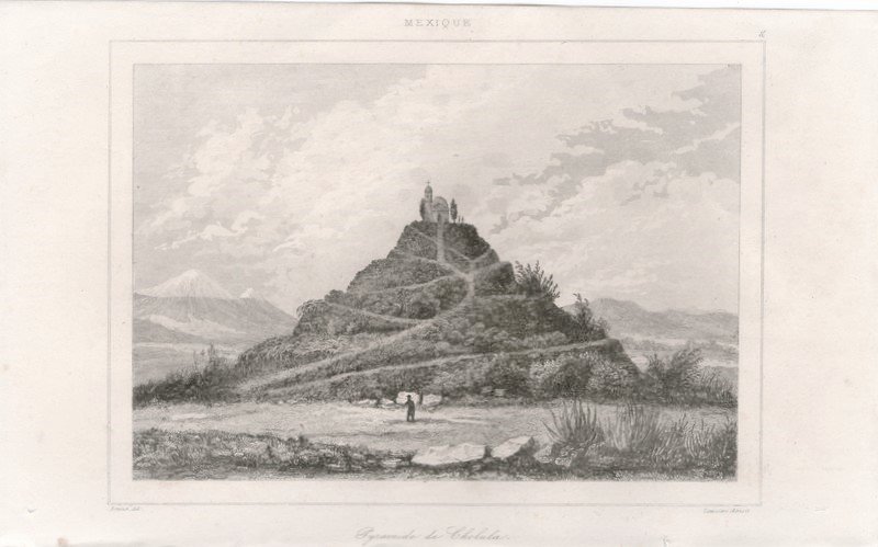 Stampa antica Old print Messico Piramide di Cholula Arnout Lemaitre 1841