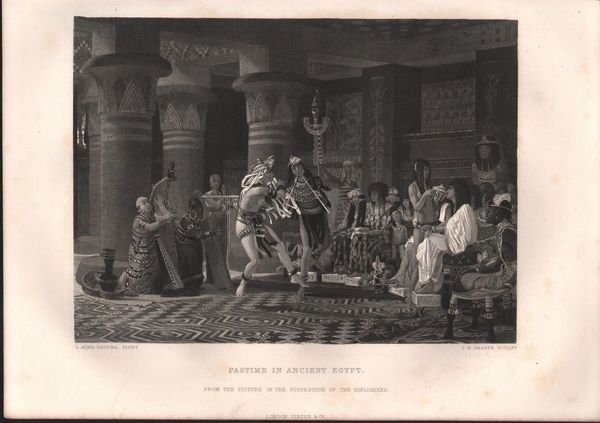 Stampa antica Old print Pastime in ancient egypt Alma Tadema W. Sharpe inc. 1875