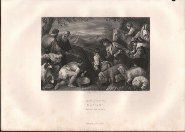Stampa antica Old print Pastoral with animals Bassano F. Sonnenleiter inc. 1875