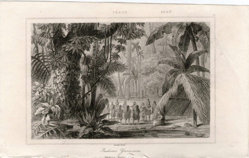 Stampa antica Old print Peru indiani Yuracares Lemaitre 1841