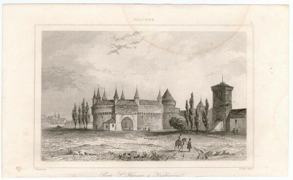 Stampa antica Old print Polonia Porta San Floriano Cracovia Lemaitre 1841
