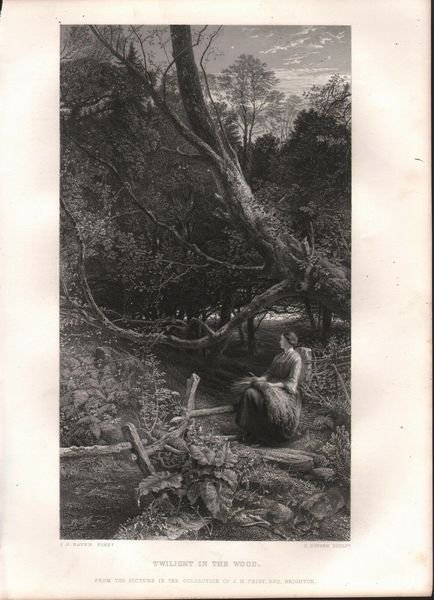 Stampa Antica Originale-Titolo-Twilight In The Wood-S.Raven Pittore-1875-L576