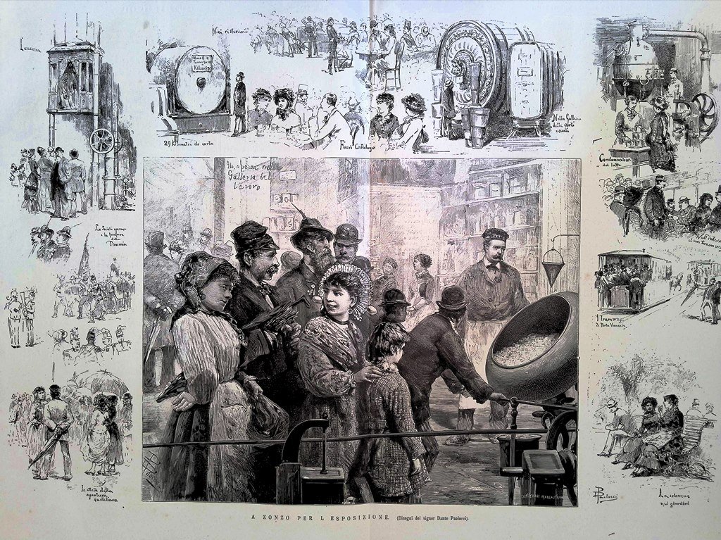 Stampa del 1881 A zonzo per l'Esposizione Milano Dante Paolocci Gallerie