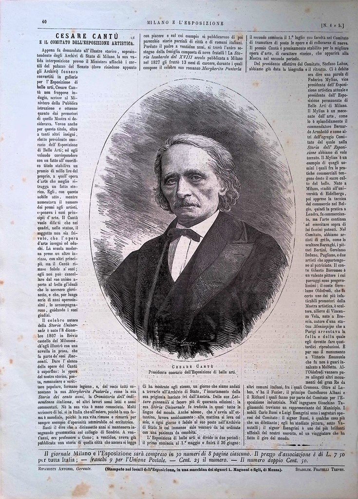 Cesare Cantù presidente onorario dell'Esposizione di belle arti