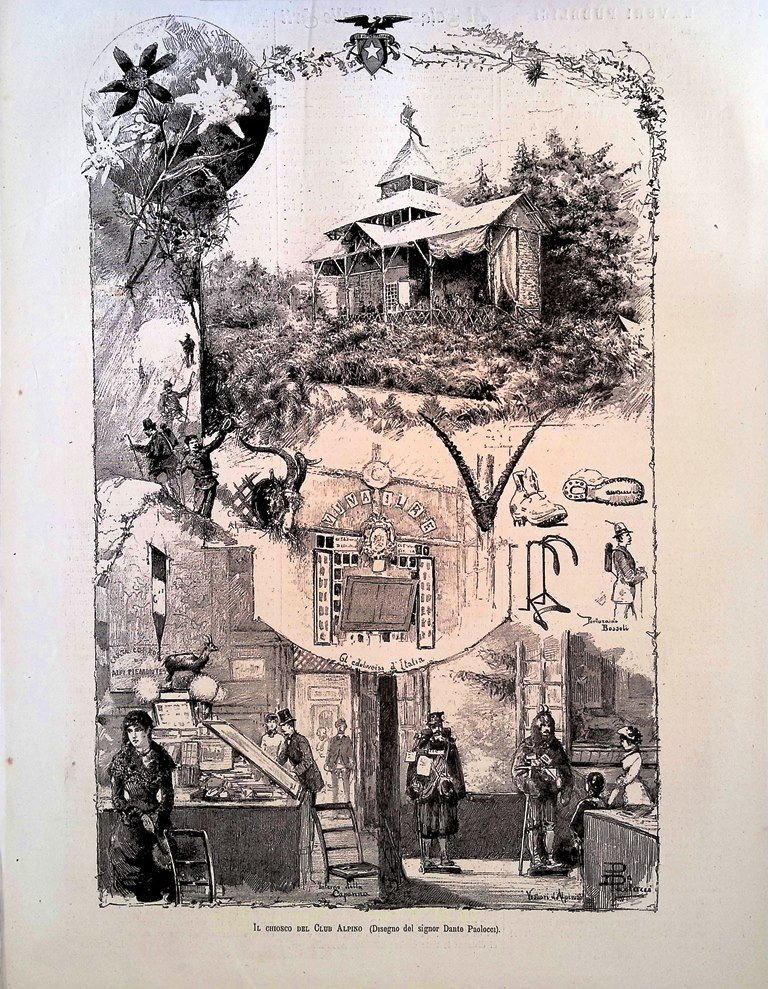 Stampa del 1881 Chiosco Club Alpino Dante Paolocci Esposizione Milano