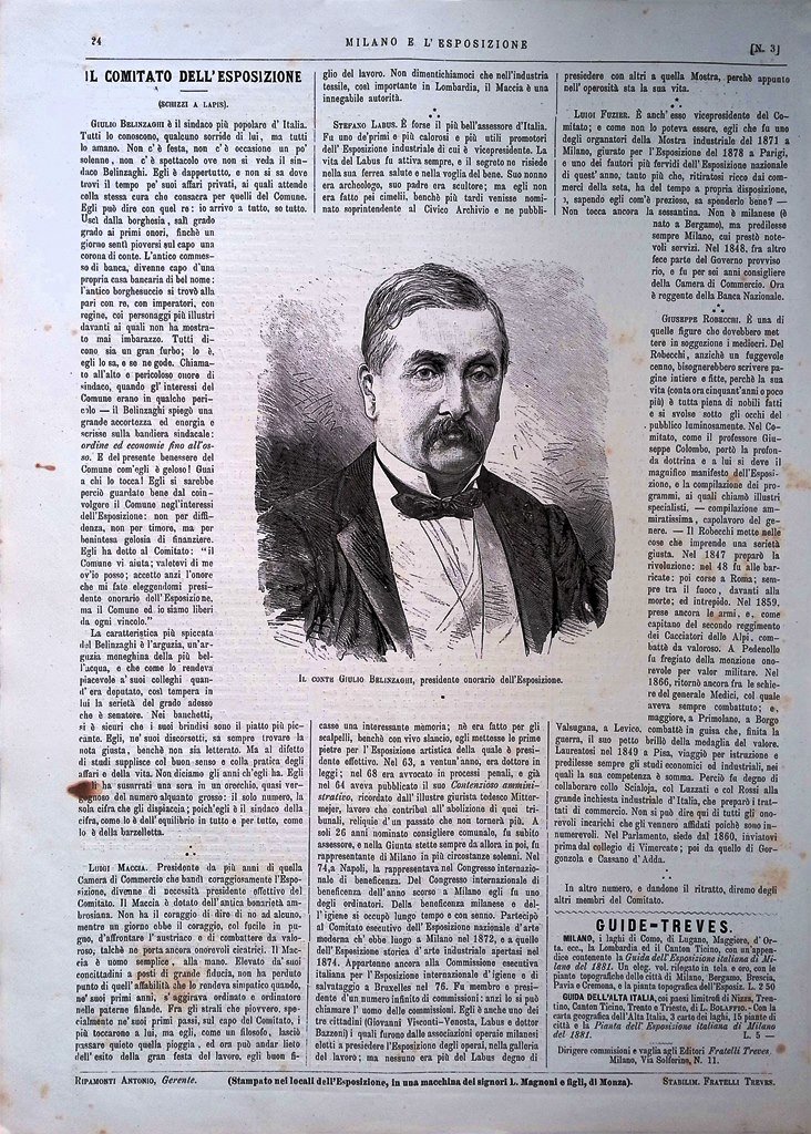 Stampa del 1881 Comitato Esposizione Nazionale Milano Giulio Belinzaghi
