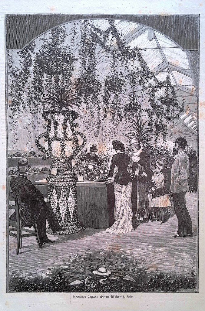 Stampa del 1881 Esposizione Orticola Augusto Feoli Milano