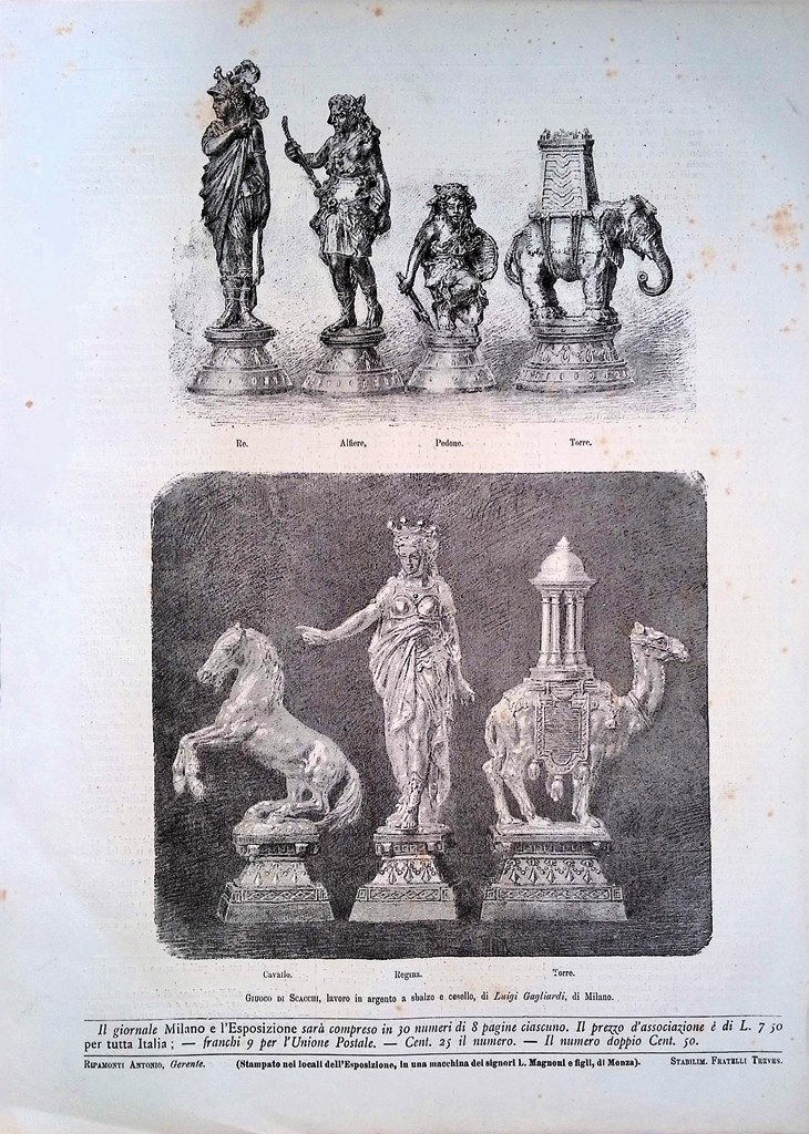 Stampa del 1881 Gioco di Scacchi Luigi Gagliardi Milano Argento