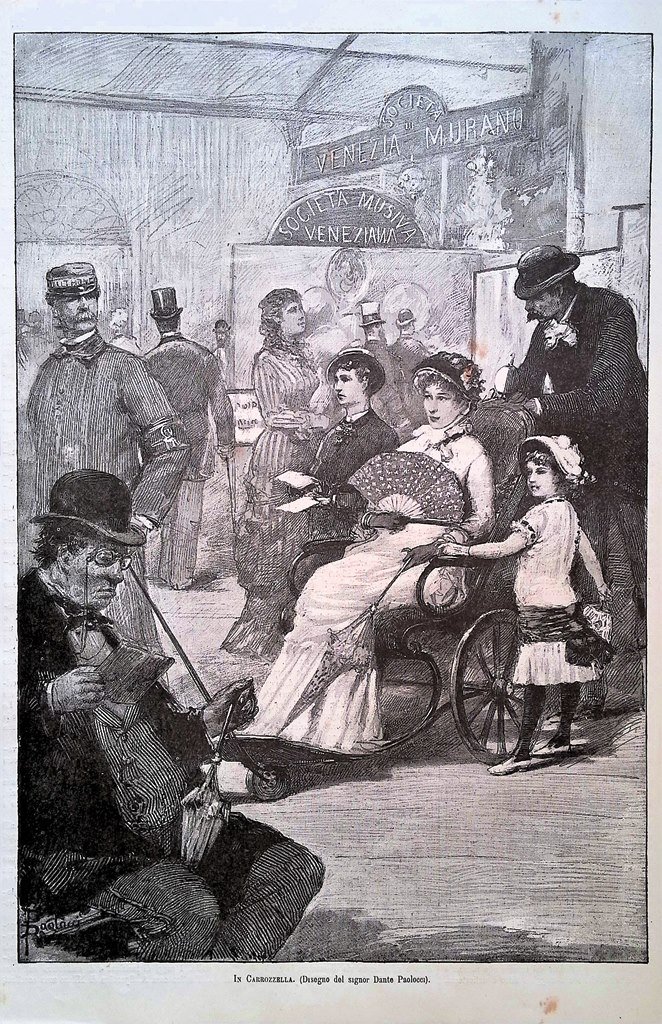 Stampa del 1881 In carrozzella Sante Paolocci Esposizione Milano