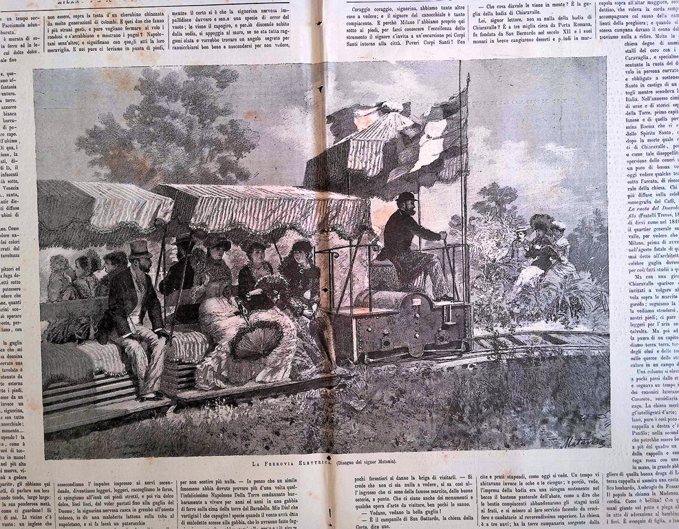 Stampa del 1881 La Ferrovia Elettrica Matania Esposizione Milano