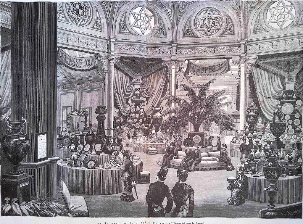 Stampa del 1881 La Rotonda Sala della Ceramica Eduardo Ximenes
