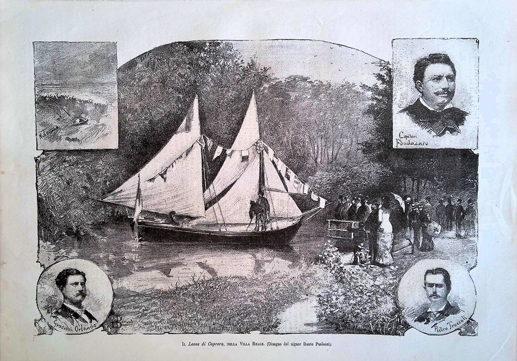 Stampa del 1881 Leone di Caprera Villa Reale Dante Paolocci Esposizione Milano
