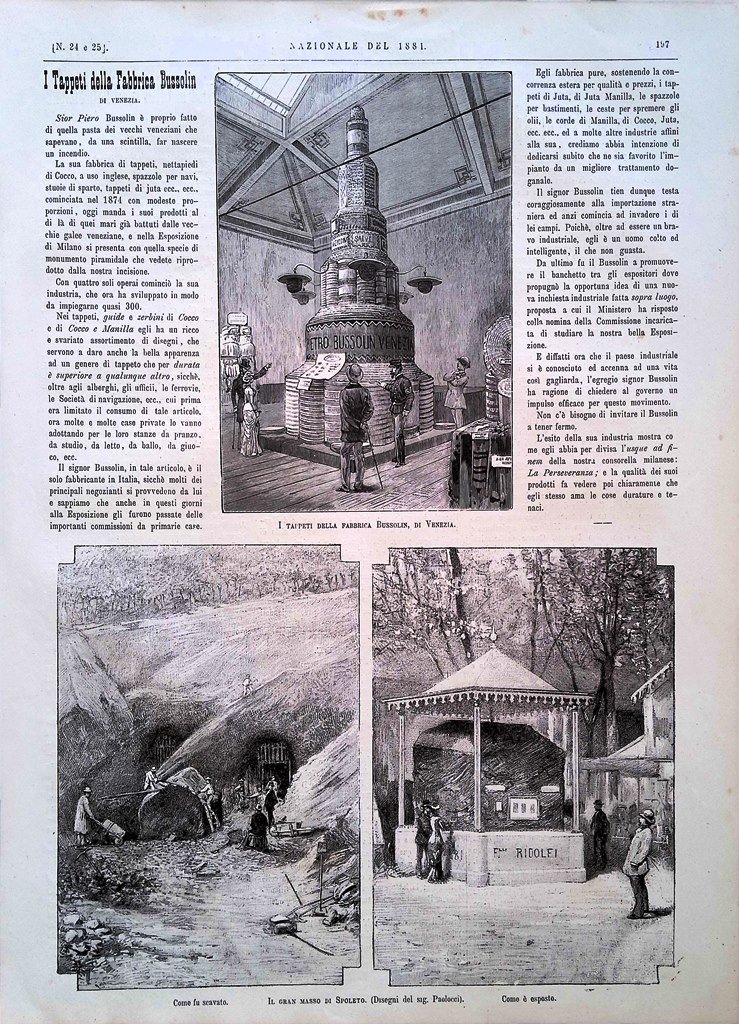Stampa del 1881 Tappeti Fabbrica Bussolin Gran Masso di Spoleto Venezia