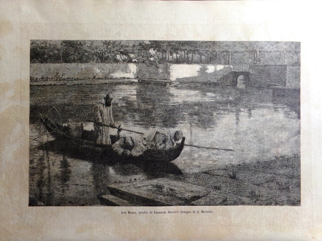 Stampa del 1884 Ave Maria Quadro di Leonardo Bazzero disegno di Michetti