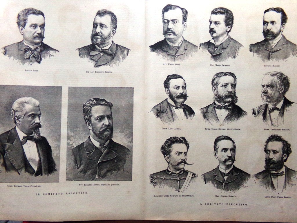 Il comitato esecutivo dell'Esposizione Italiana di Torino: Angelo Rossi, Filiberto Allasia, Tommaso Villa, Edoardo Daneo, Emilio Sineo, Mario Beltrami, Antonio Bianchi, Luigi Aiello, Ulrico Geisser, Desiderato Chiaves, Carlo Compans, Eusebio Sormani, Paolo Boselli