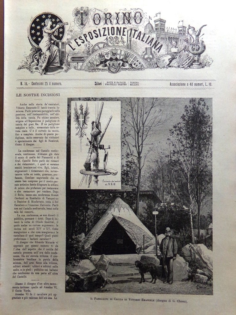 Stampa del 1884 Il Padiglione di Caccia di Vittorio Emanuele Chessa