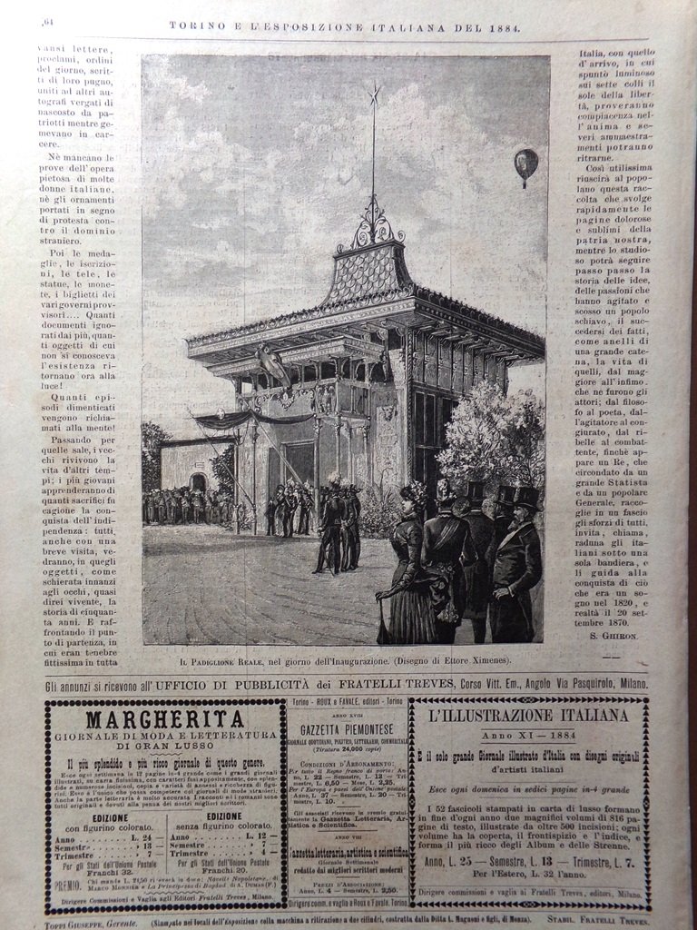 Stampa del 1884 Il padiglione Reale nel giorno dell'inaugurazione Ximenes