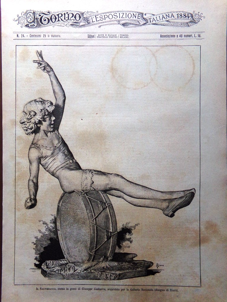 Stampa del 1884 Il Saltimbanco statua Giuseppe Gasbarra Riera