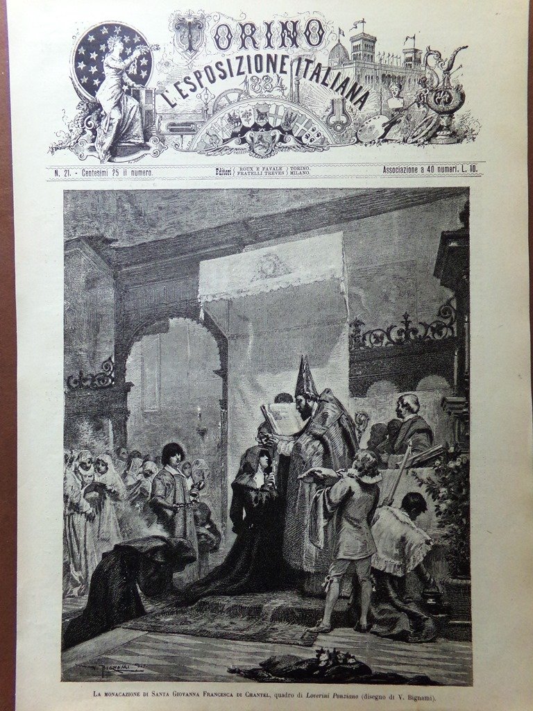 Stampa del 1884 La Monacazione Santa Giovanna Francesca di Chantel Ponziano
