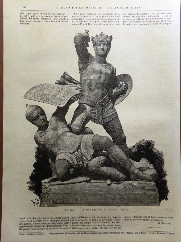 Stampa del 1884 Torino Il Monumento al Conte Verde