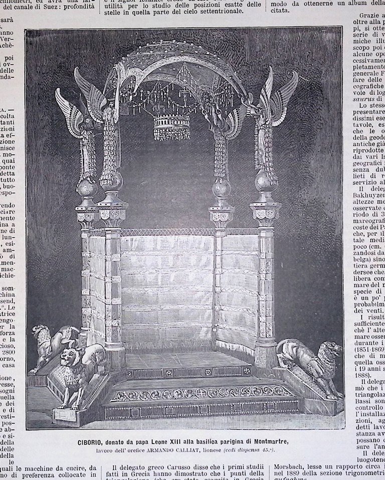 Stampa del 1889 Ciborio donato da Papa Leone XIII Basilica Montmartre