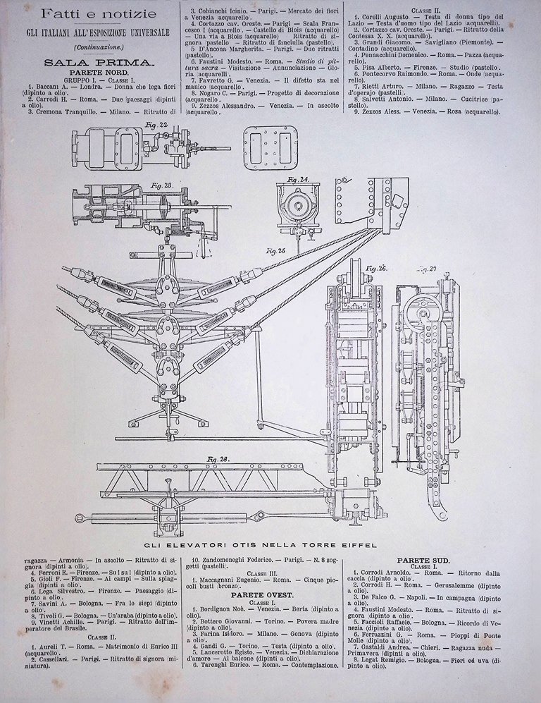 Stampa del 1889 Elevatori Otis nella Torre Eiffel Esposizione di Parigi