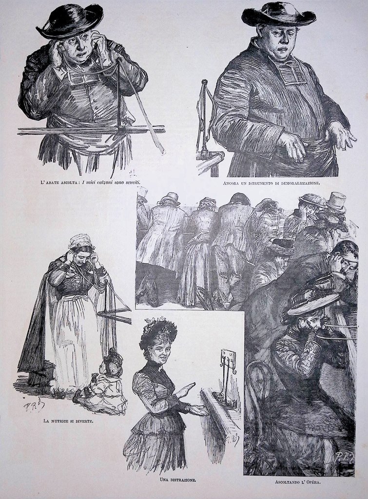 Stampa del 1889 Entusiasti del Fonografo Abate Bontempo Demoralizzazione Opera