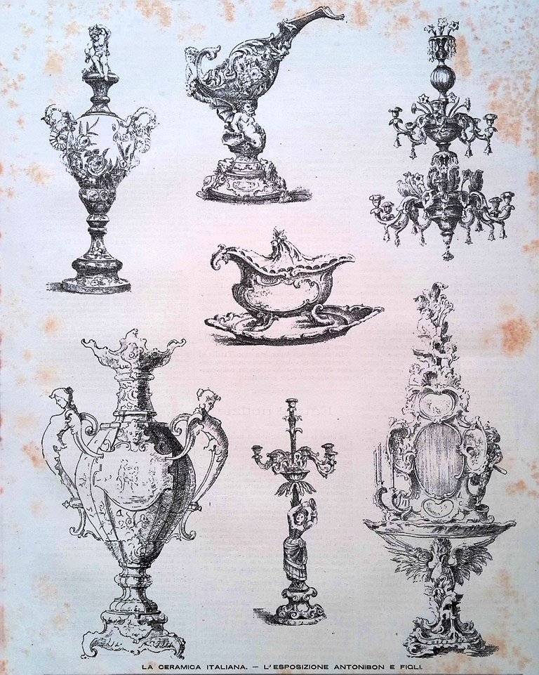 Stampa del 1889 Esposizione di Parigi Ceramica Italiana Antonibon e Figli