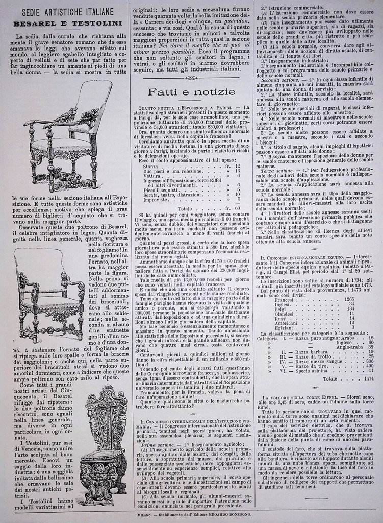 Stampa del 1889 Esposizione Sedie Artistiche Italiane Besarel e Testolini