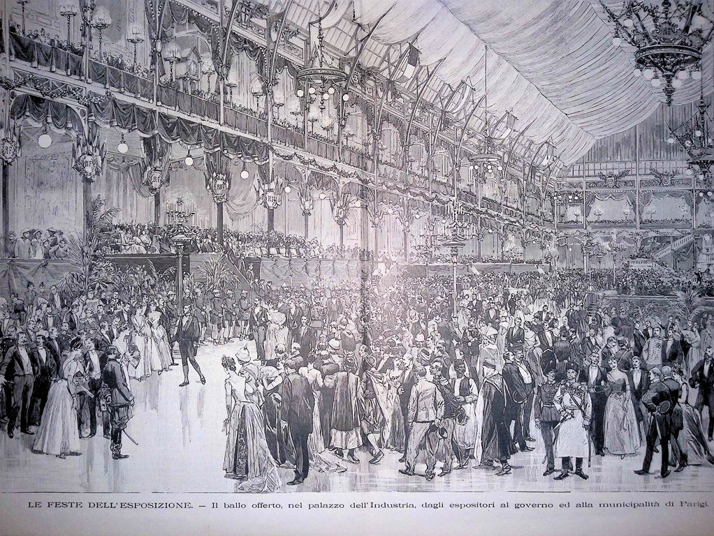 Stampa del 1889 Feste Esposizione Ballo nel Palazzo Industria di Parigi Governo