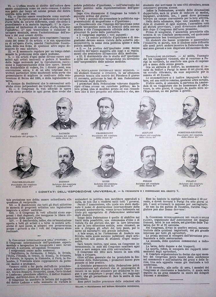 Stampa del 1889 I Comitati dell'Esposizione Universale Presidente Gruppo V