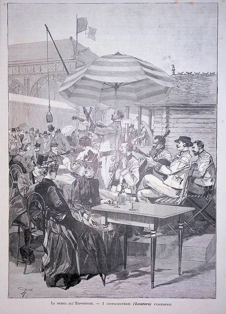 Stampa del 1889 I concertisti Lautars Rumeni Esposizione di Parigi Musica