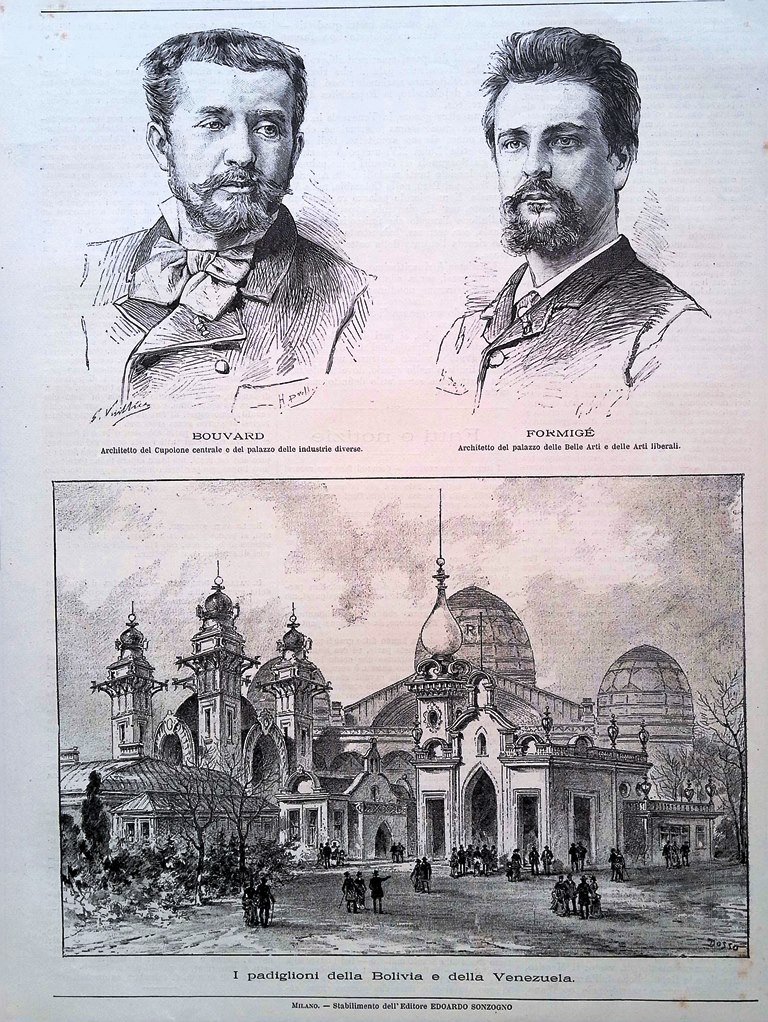 Stampa del 1889 I padiglioni di Bolivia e Venezuela Bouvard Formigé Esposizione