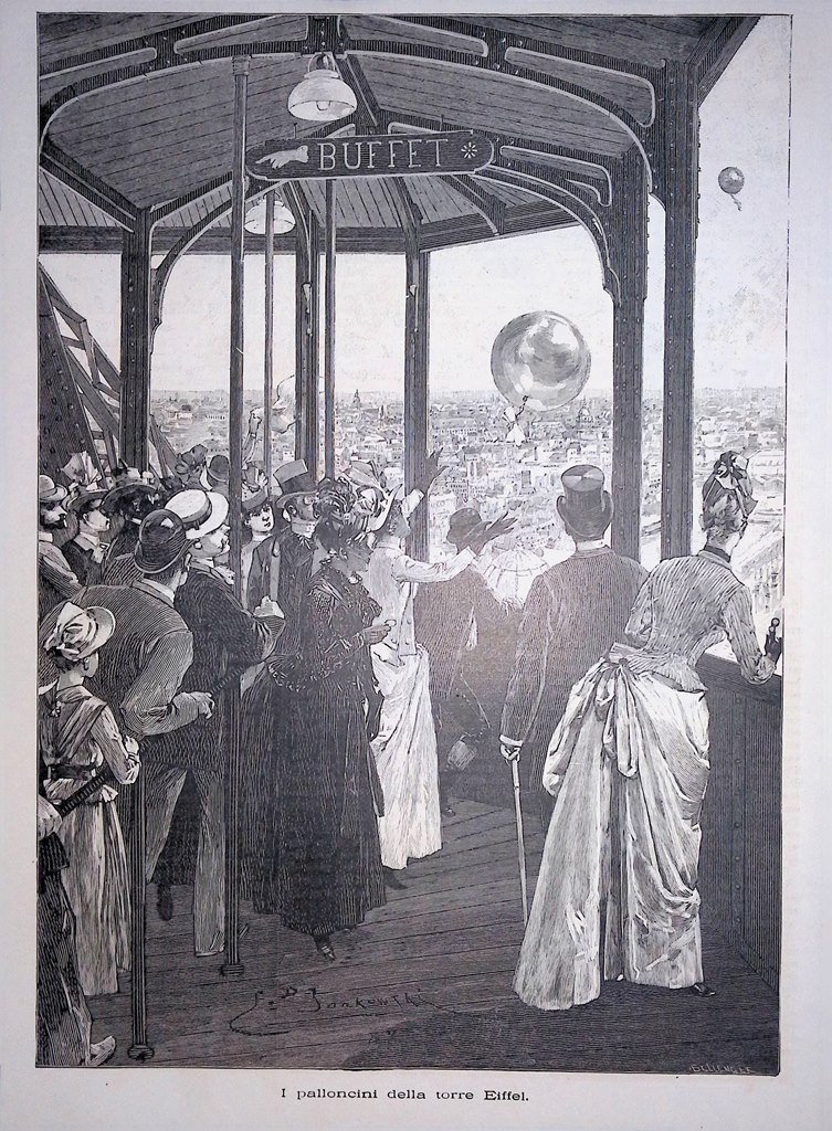 Stampa del 1889 I palloncini della Tour Eiffel Esposizione di Parigi