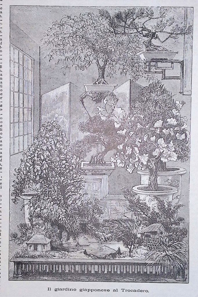 Stampa del 1889 Il giardino giapponese al Trocadero Esposizione di Parigi
